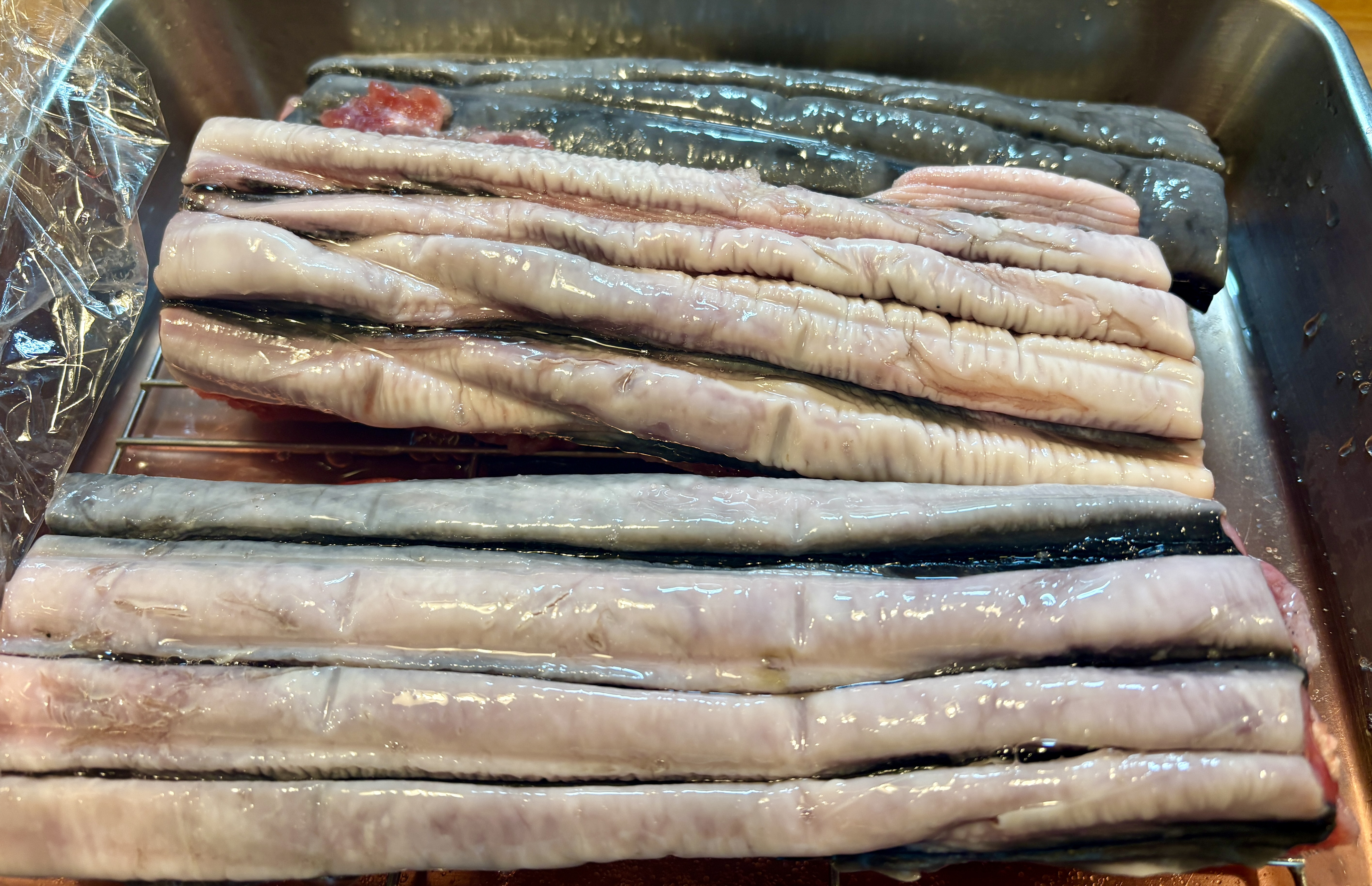 クジラベーコンの原料はこの「うねす」と呼ばれるクジラのおなかの皮と脂肪の部分を言います。